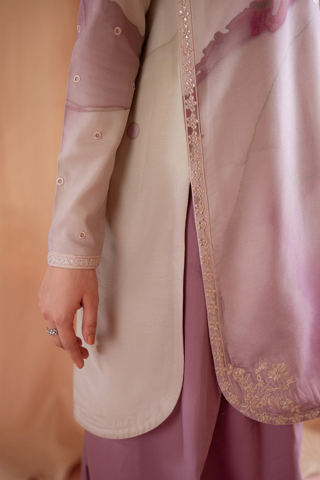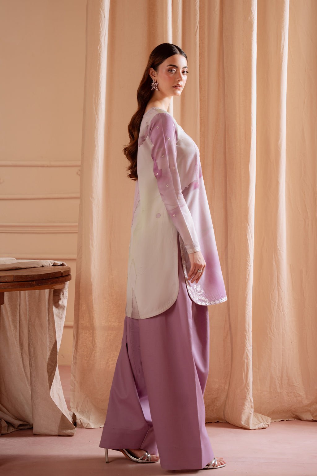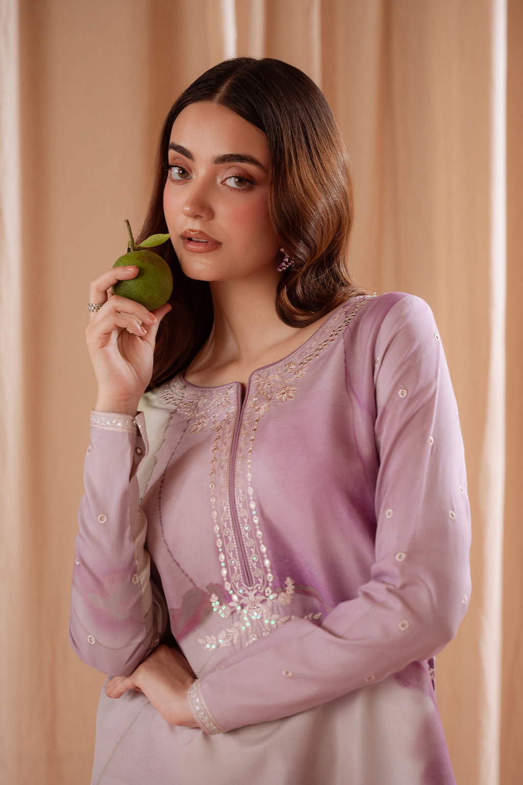 Printed and embroidered lawn silk shirt paired with cotton farshi shalwar