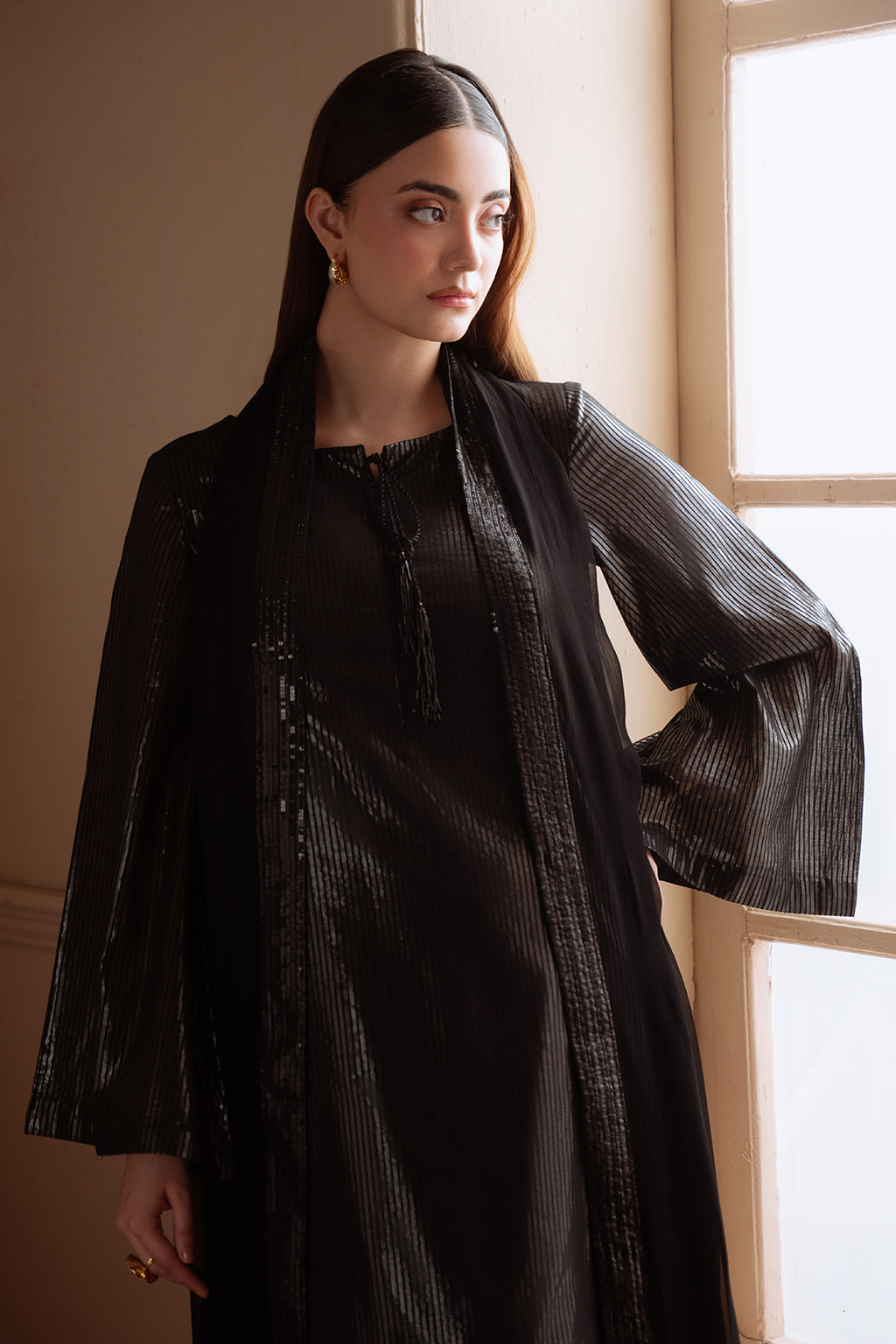 Embroidered and embellished lawn zari shirt paired with silk trouser and chiffon dupatta